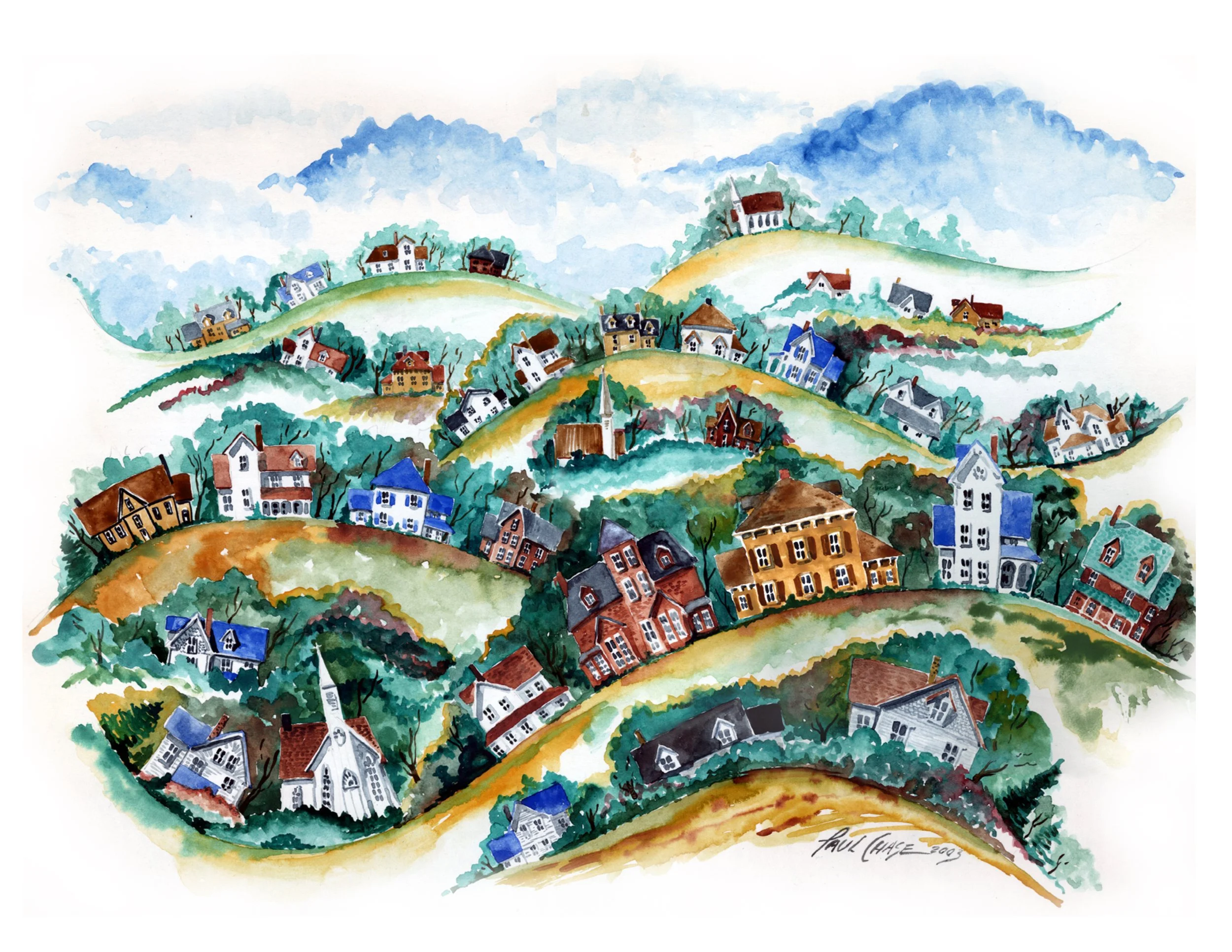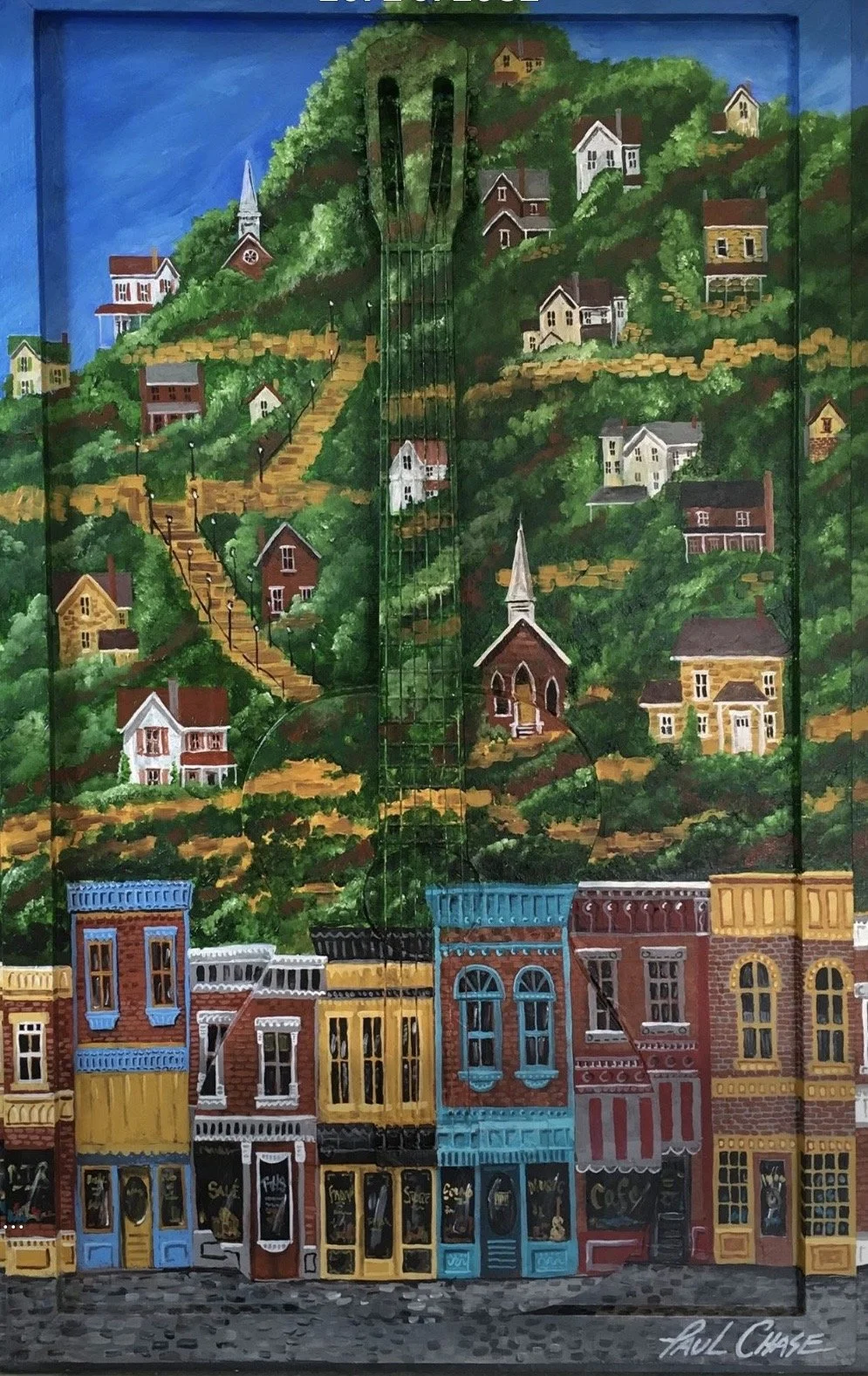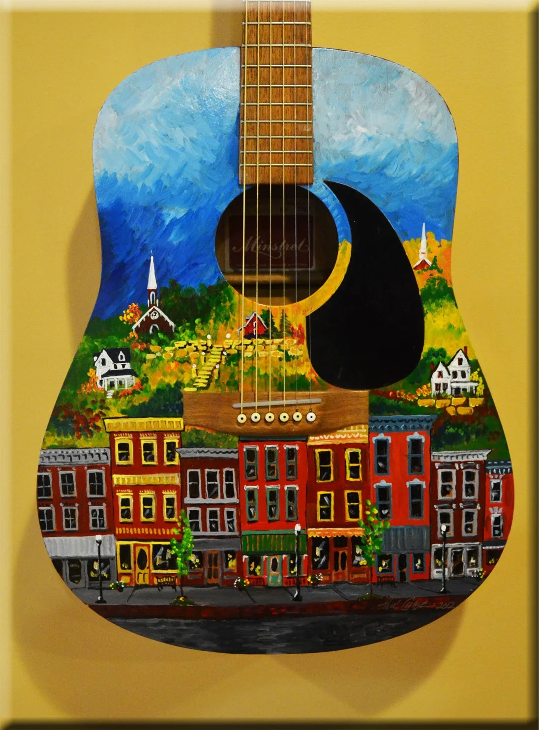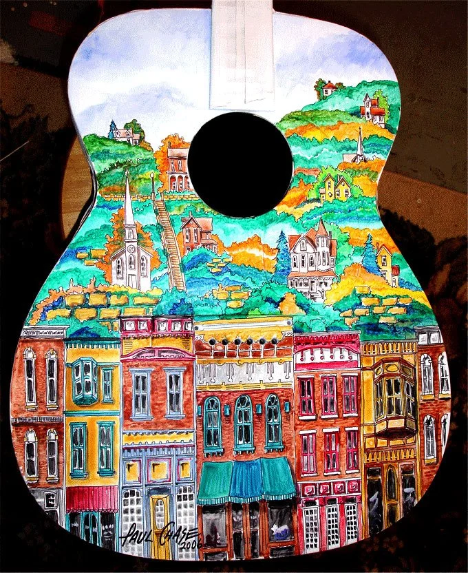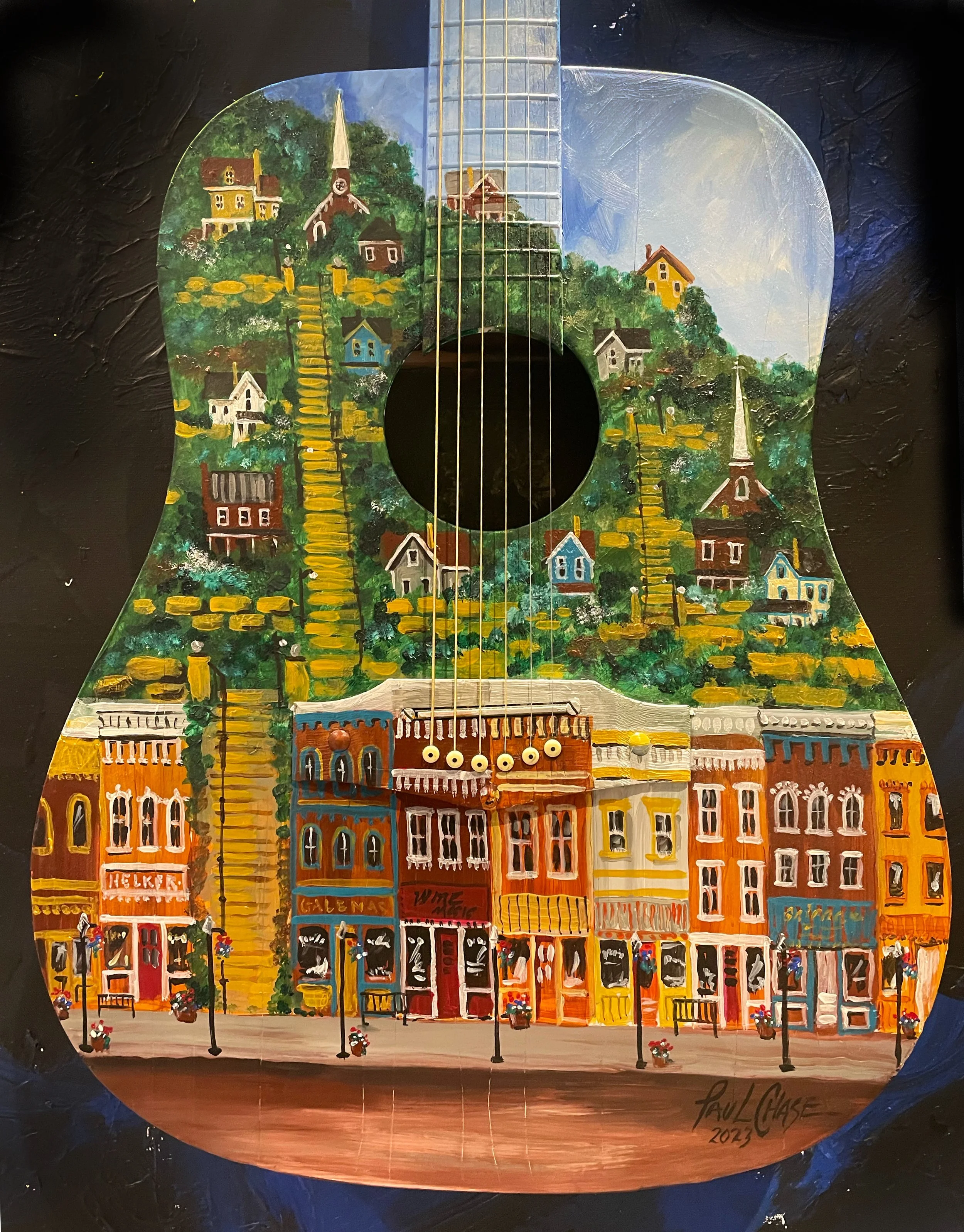 Galena Town with Guitar - Acrylic on panel