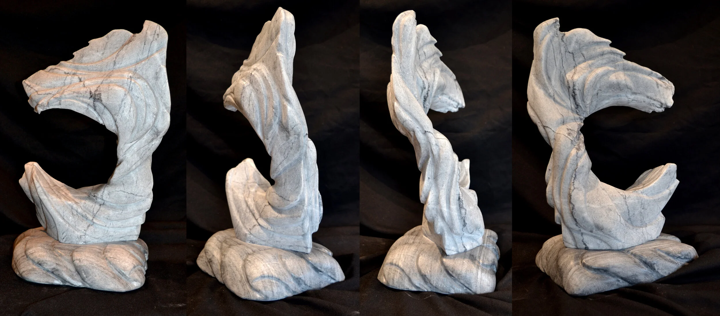 “GreyStormWave” - 16x18x10” - Arizona Marble, soapstone base - in private collection