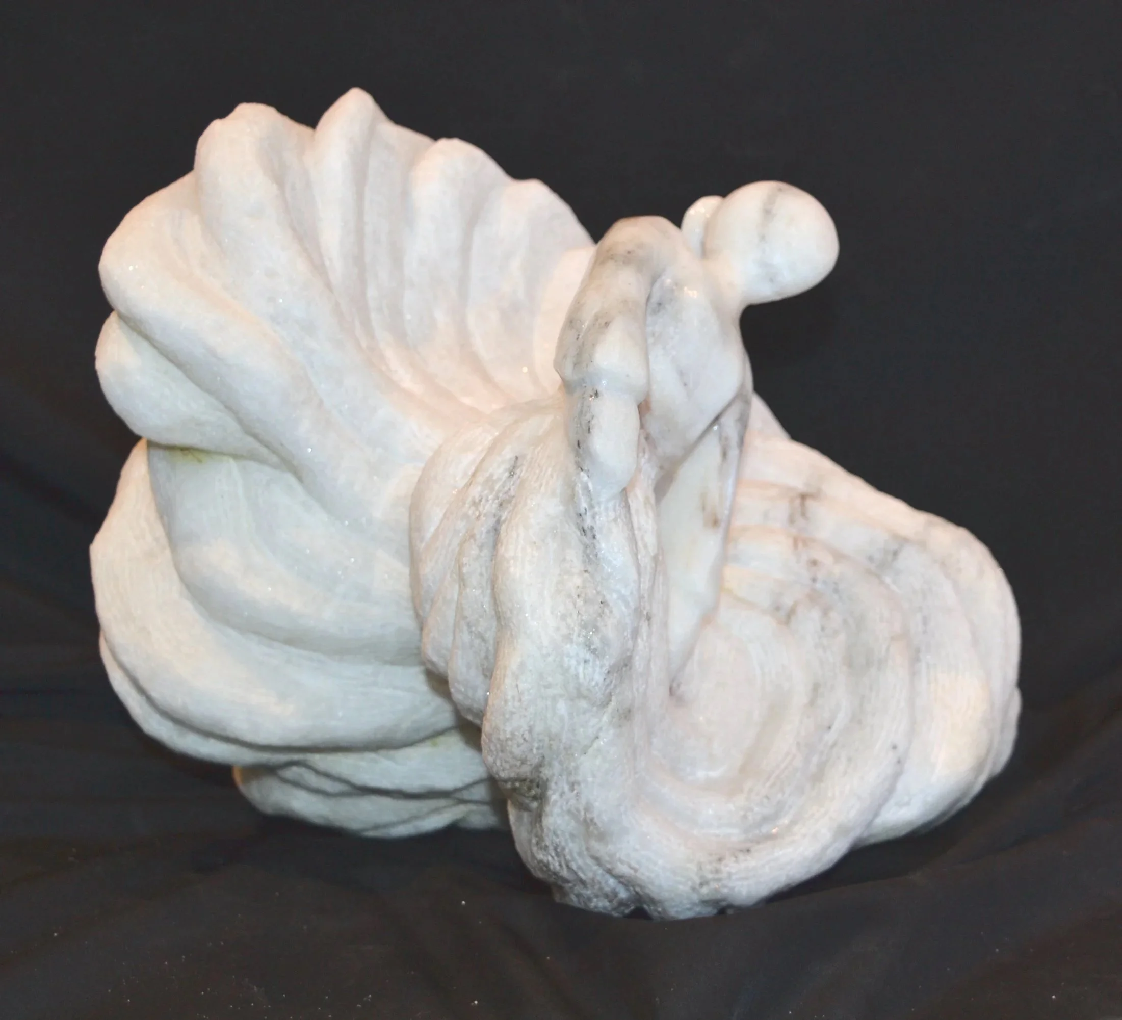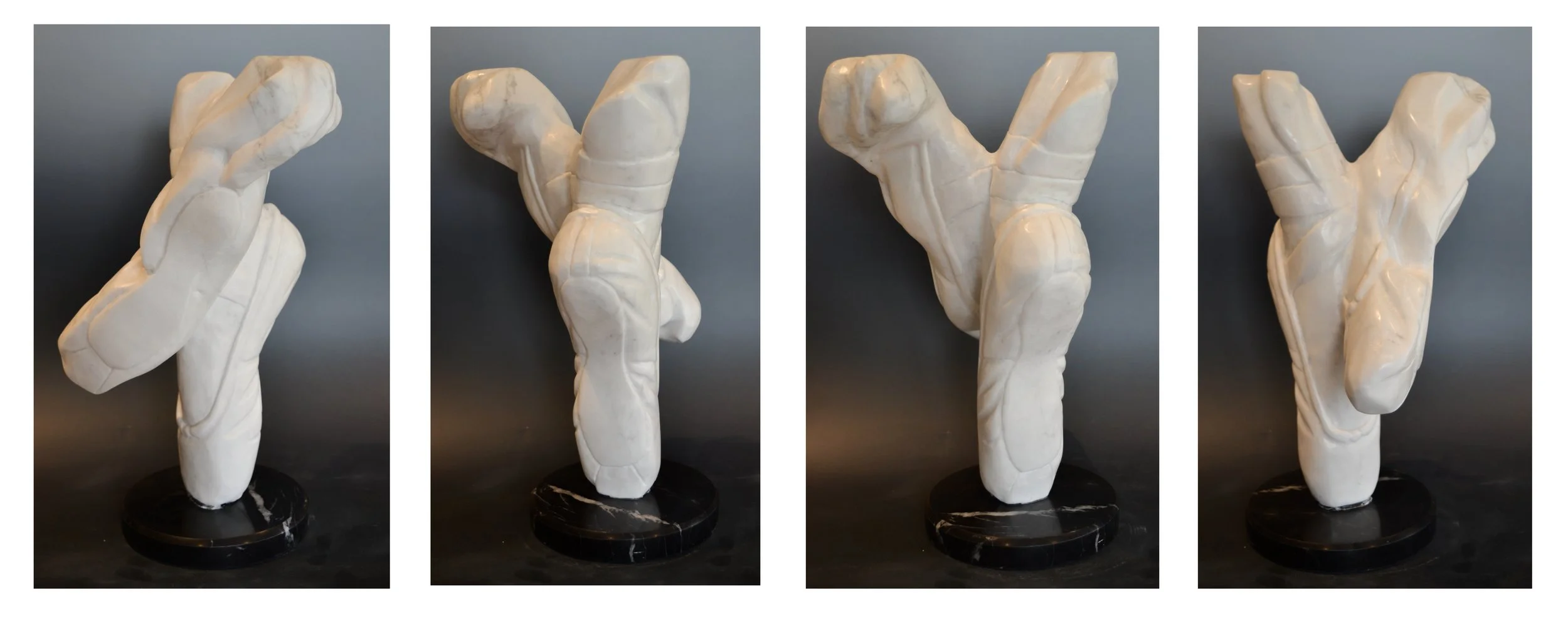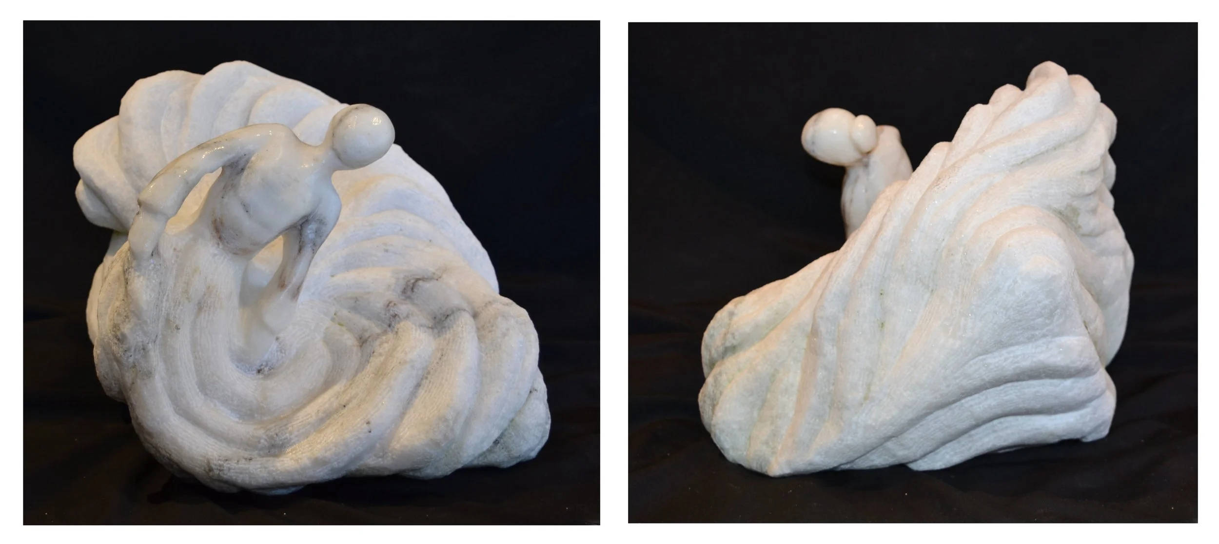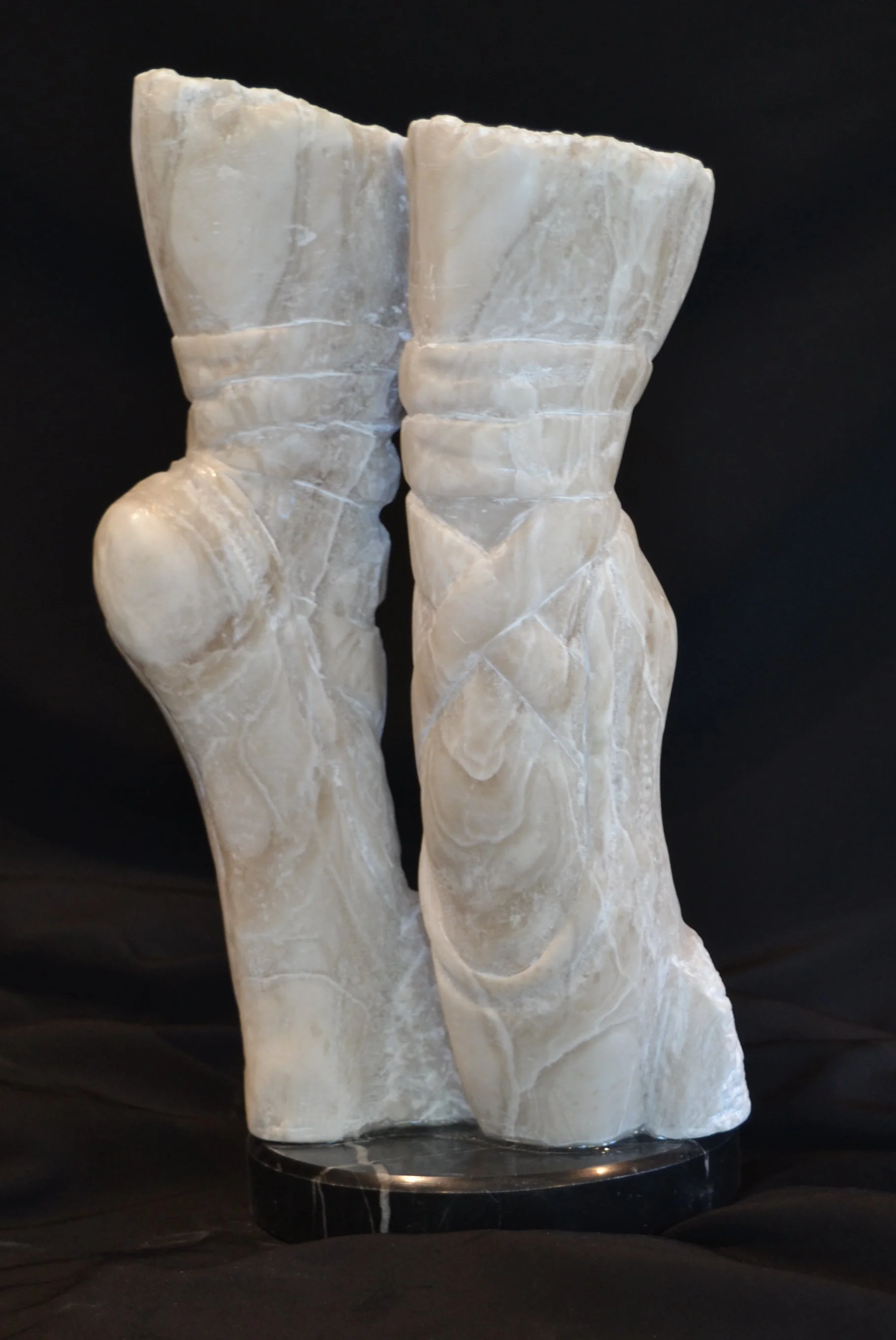 “Try and Catch the Wind Ballet” - 14x9x13” - White marble with black soapstone base - $1000