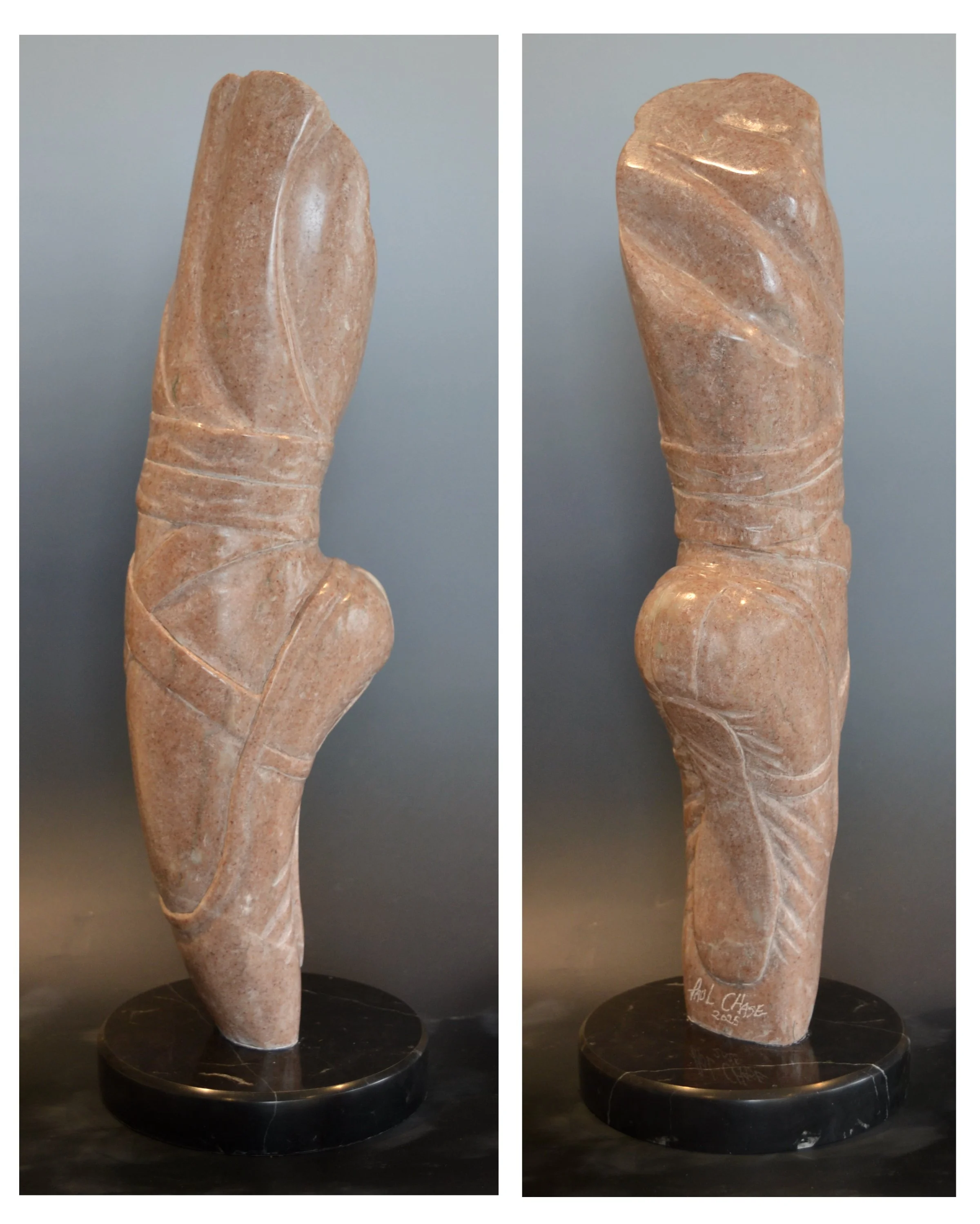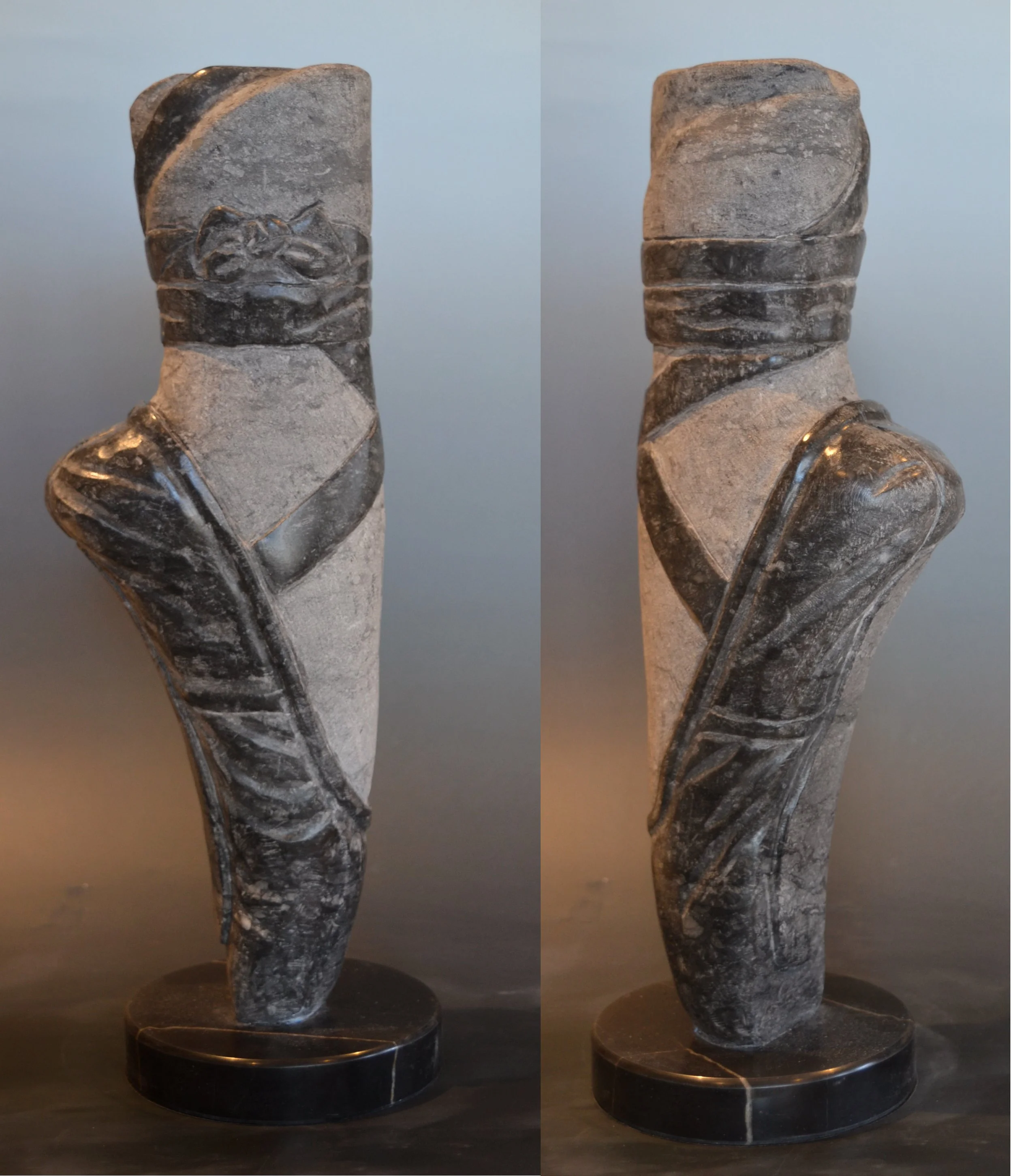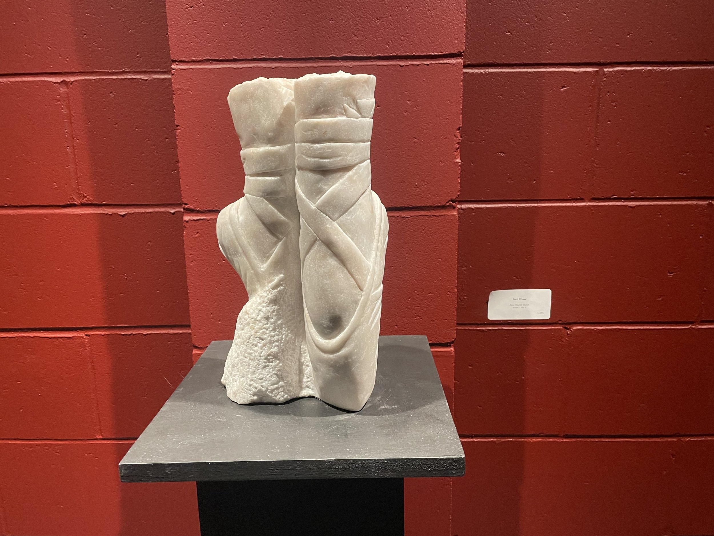 “Try and Catch the Wind Ballet” - 14x9x13” - White marble with black soapstone base - $1000