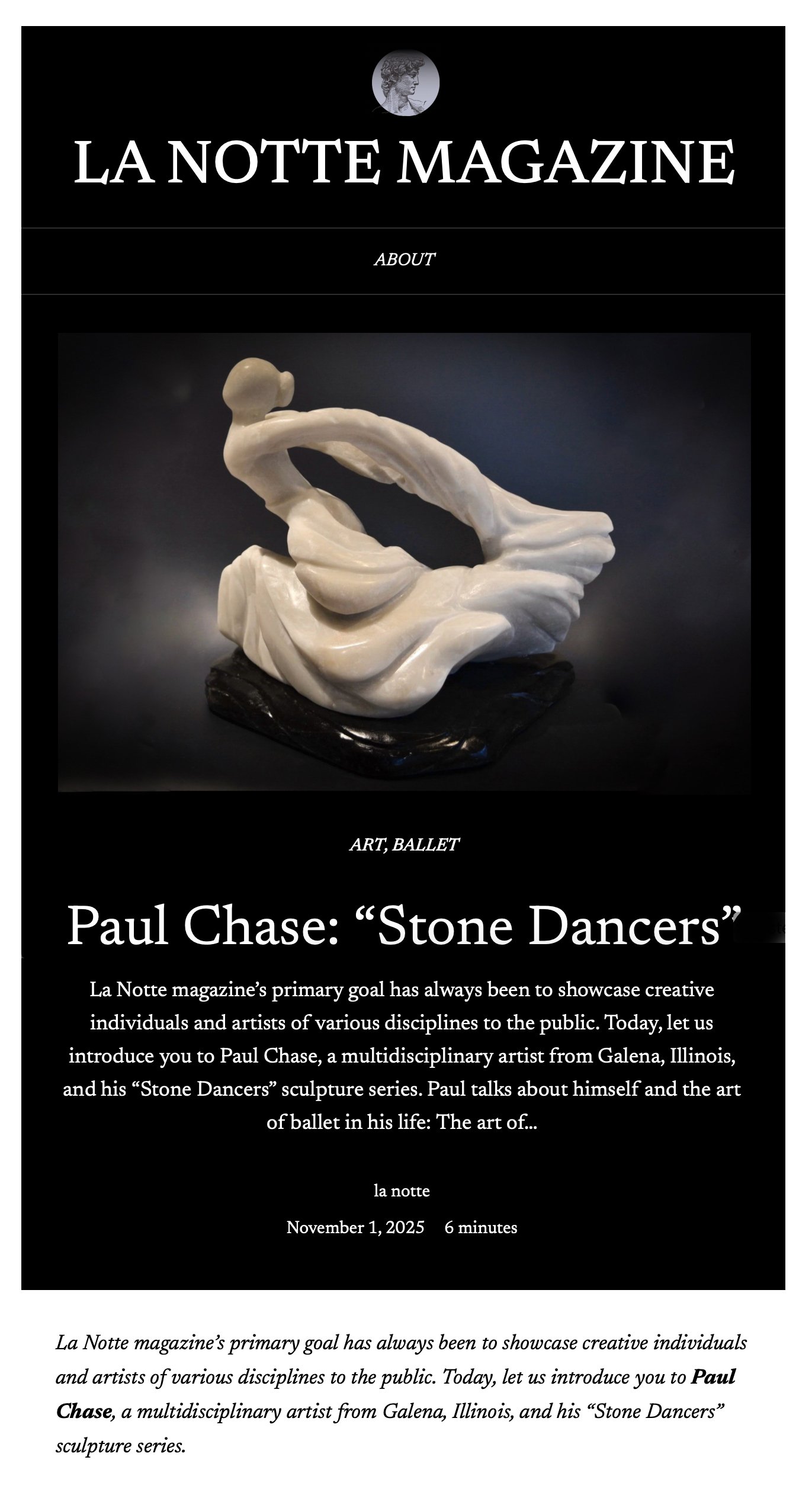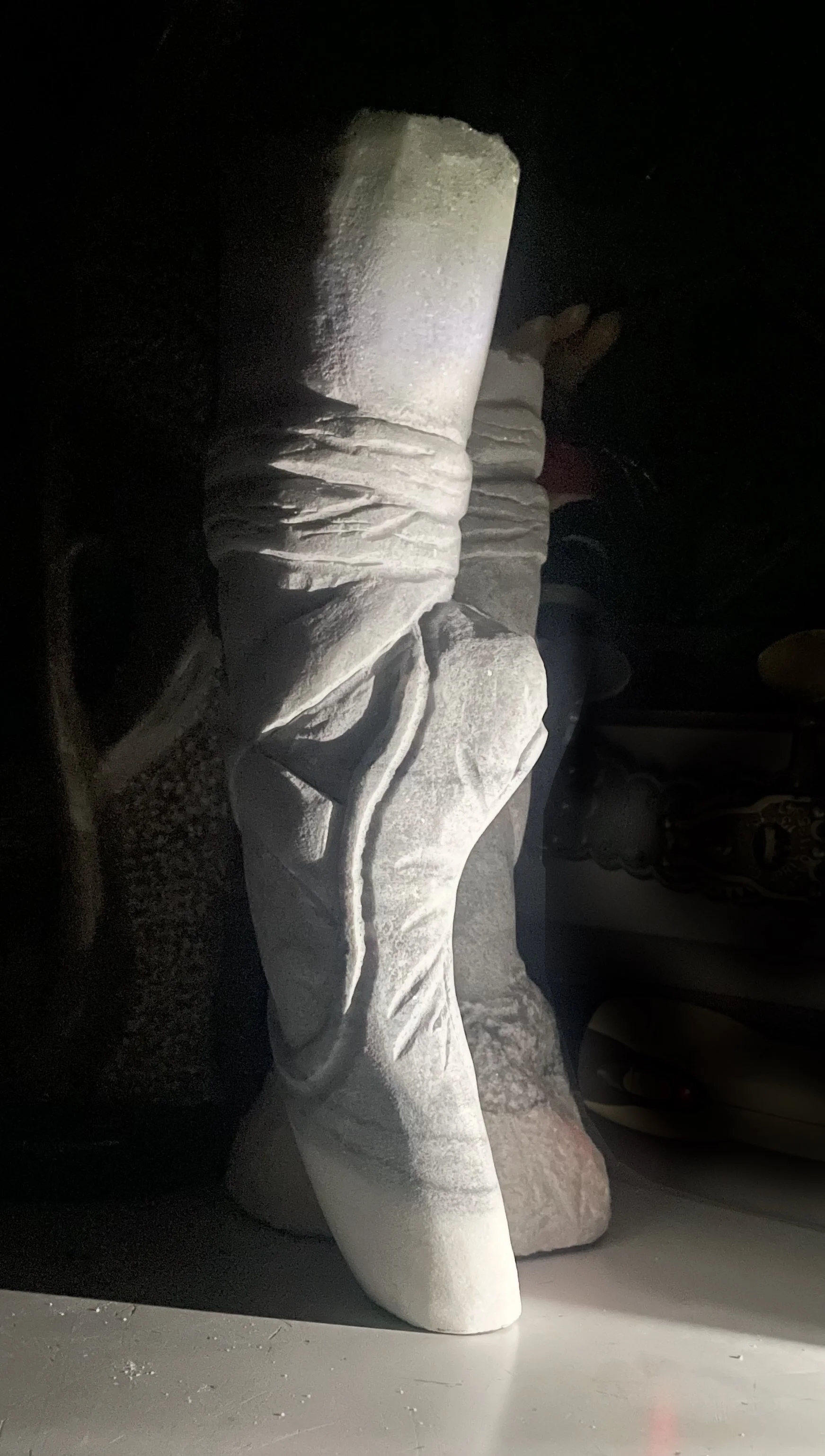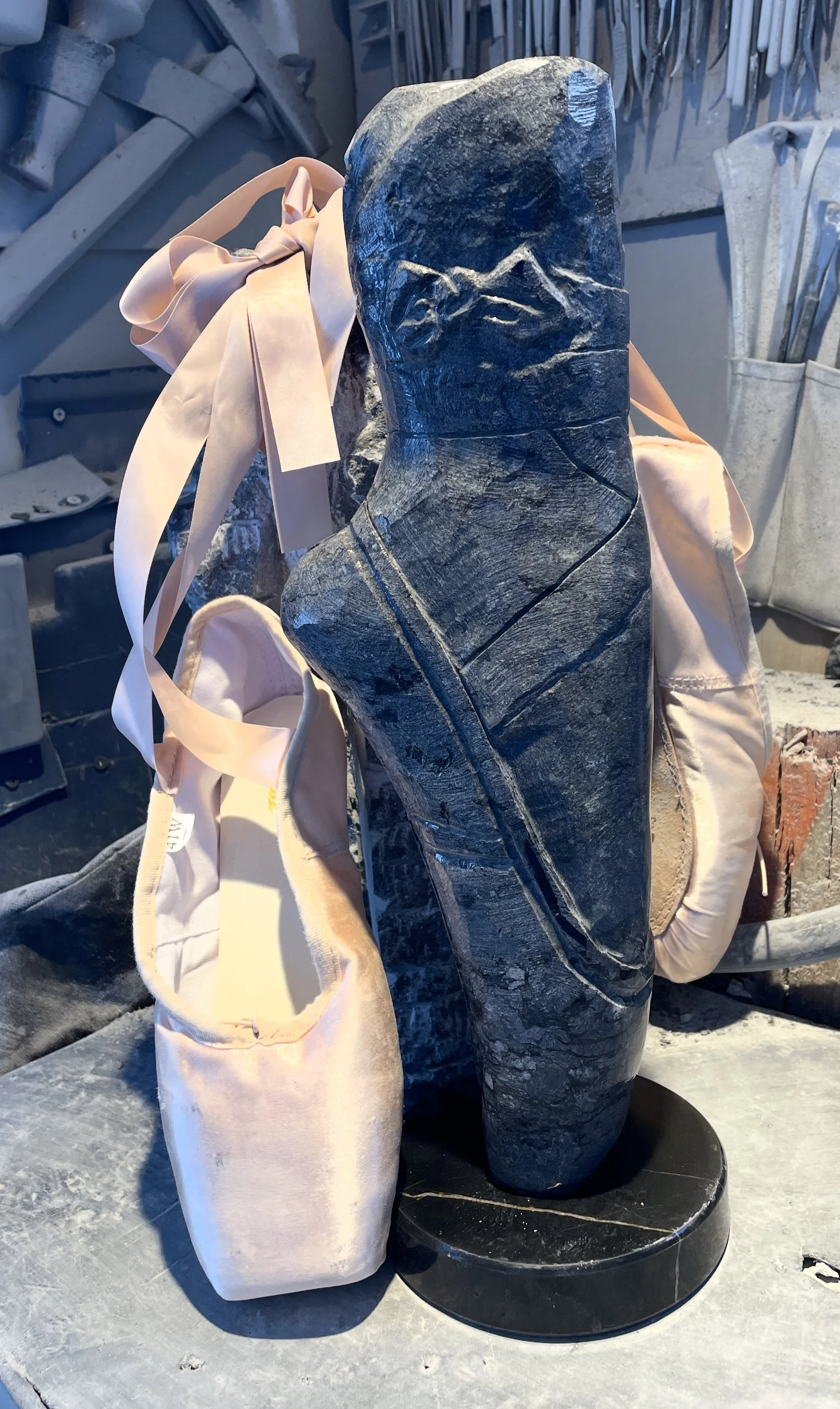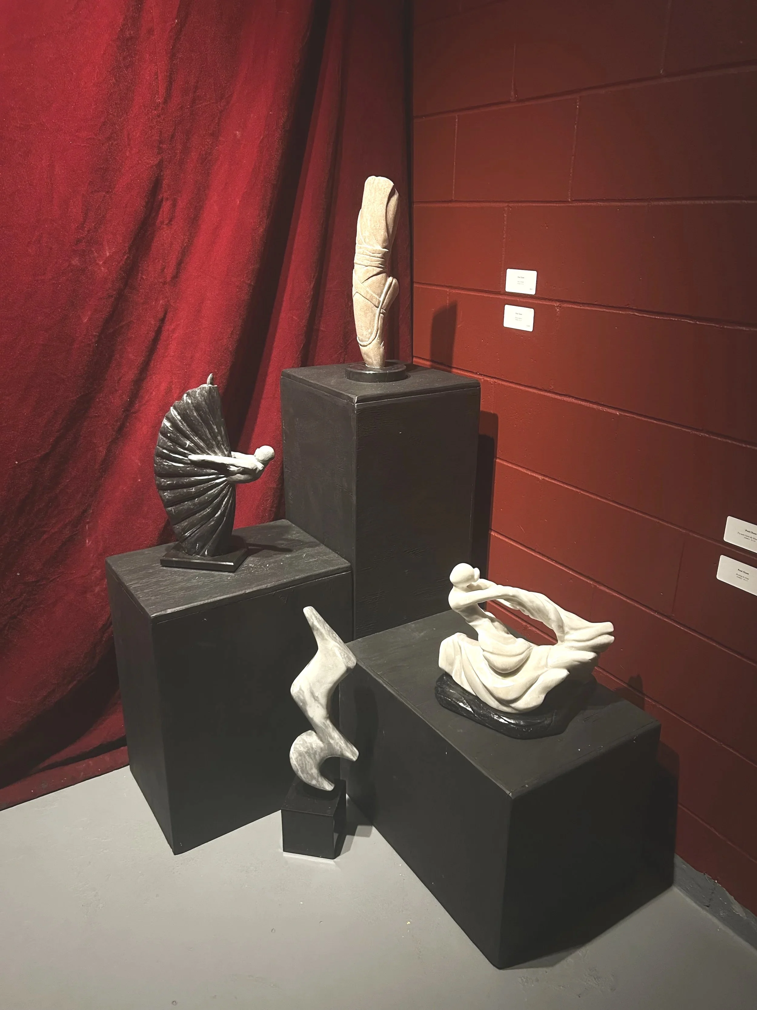 “Try and Catch the Wind Ballet” - 14x9x13” - White marble with black soapstone base - $1000
